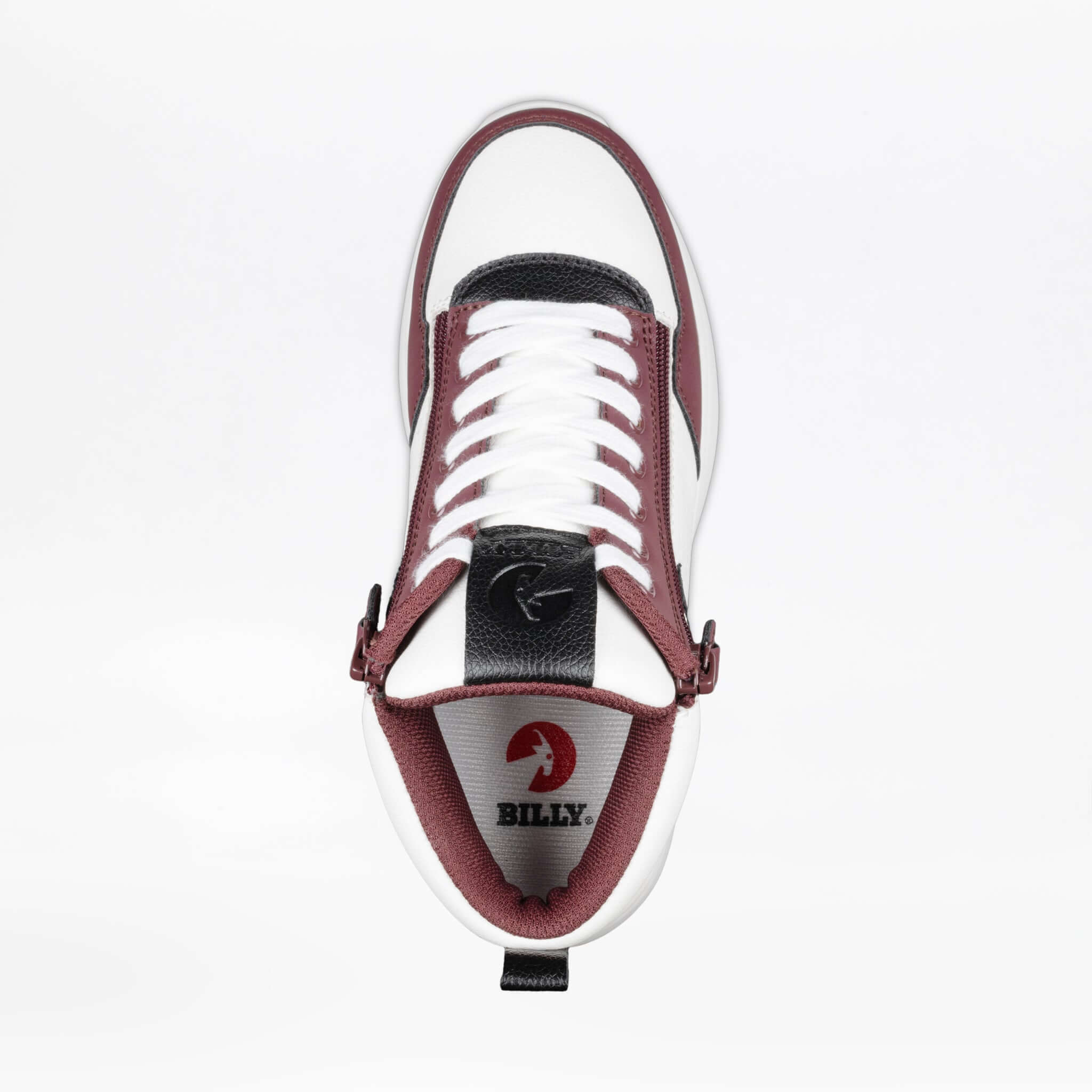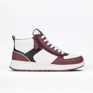 Crafted from genuine leather and suede, this shoe combines luxurious materials with a bold, yet versatile colorway. The double zipper designone on the lateral side and one on the medial sideprovides easy access and a secure fit, making these shoes as functional as they are fashionable. Whether you're dressing up or down, the Women's White/Wine/Black BILLY Comfort DZ High Top delivers the perfect blend of comfort, durability, and modern flair.