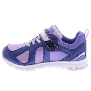 A wash of bright, fun colors brings instant-favorite appeal to a machine-washable sneaker designed with a lightweight, barefoot feel. Elastic laces and a hook-and-loop bridge strap make it easy to put on and take off, while a sturdy heel cup and a grippy rubber tread provide stability and traction in any activity.